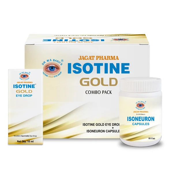 Isotine Gold offers the combined benefits of Isotine Plus Eye Drops and Isoneuron Capsulesin a single package. Isotine Plus Eye Drops are 100% ayurvedic and backed by research,while Isoneuron Capsules complement their effectiveness. Together, they provide a powerfulsolution for treating various critical eye-related complications like cataracts, glaucoma, nightblindness,retinitis pigmentosa and macular degeneration.