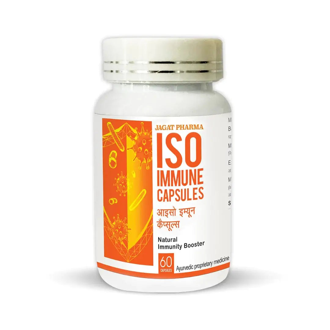 Poor diet, toxic skincare ingredients, environmental pollution, germs, etc., take a serious toll on your immune system. Jagat Pharma Iso Immune Capsules, a natural immunity booster, contain extracts of high-quality, clinically-approved Ayurvedic ingredients that help to build body immunity to prevent various infections. Jagat Pharma Iso Immune Capsules are 100% natural and extremely effective in preventing bacterial and virological infections.